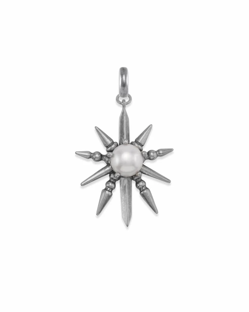 The Sunburst with Pearl Charm in Vintage Silver was taken from our Summer 2016 Collection. Make a statement with this versatile Silver charm that can be worn on charm necklaces and charm bracelets alike. We have also designed a custom removable bail fitted with a steel spring to make taking off and putting on the Sunburst with Pearl Charm effortless.
